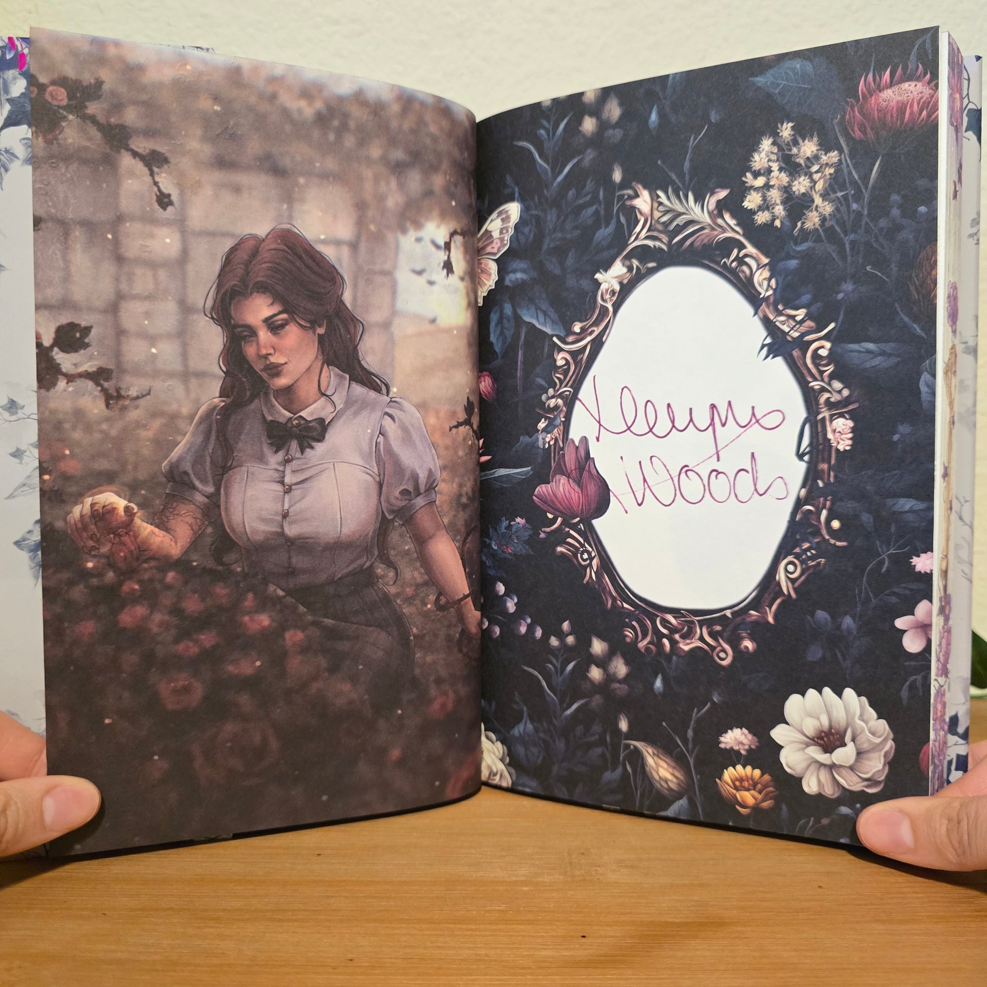 - Foiled hand-drawn endpapers by Charlotte
